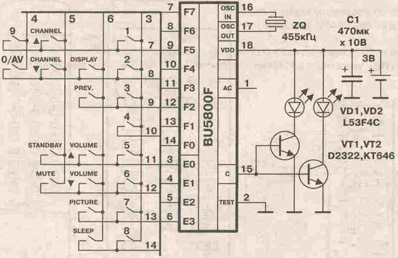 Сейчас уже трудно представить себе без пультов дистанционного управления современную видео- аудиотехнику. Но если телевизор, видеомагнитофон или музыкальный центр - вещи долгоживущие, обычно служат своим хозяевам не один год, то не так обстоит дело с пультами дистанционного управления. Надписи на кнопках постепенно стираются, токопроводящий слой портится, а дети, собаки, семейные ссоры. неумеренные возлияния, попытки просмотра телевизора в ванной (было) значительно сокращают жизнь пульта. Смотреть телевизор или видеомагнитофон не вставая с кресла уже не получается, но не покупать же новую технику, если сломался пульт дистанционного управления…