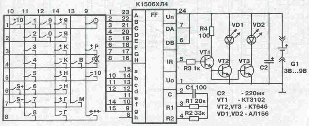 РУБИН. Имеет функции пульта RC-4. Собран на микросхеме К1506ХЛ1
