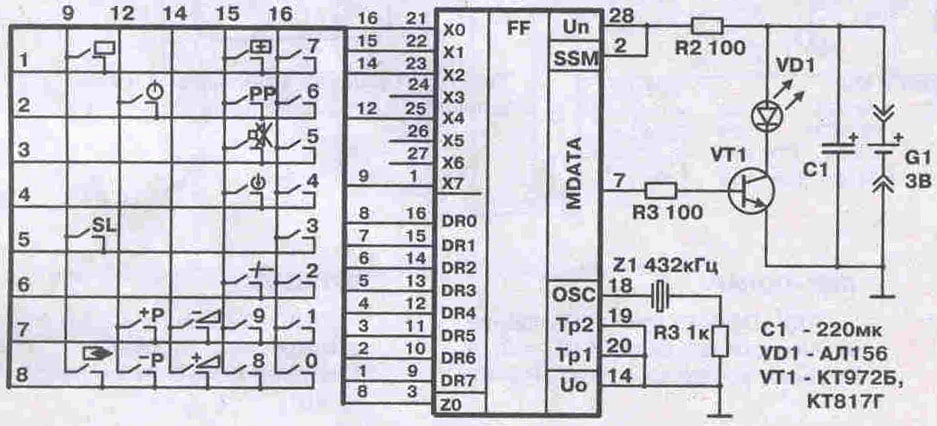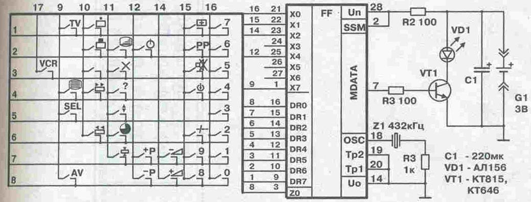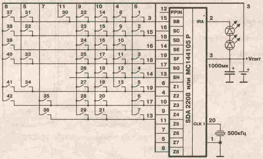 RC-51331. К телевизору "TVT", собираются на микросхеме SDA2208, MC144105 или KS51810-50 работают в системе Siemens. Возможна замена аналогичными пультами Grundig или Siemens Beco, собранными на микросхеме МС144105.