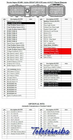 Toyota Supra JZA80 / Aristo JZS147 2JZ-GTE non-vvti ECU Pinout Diagram